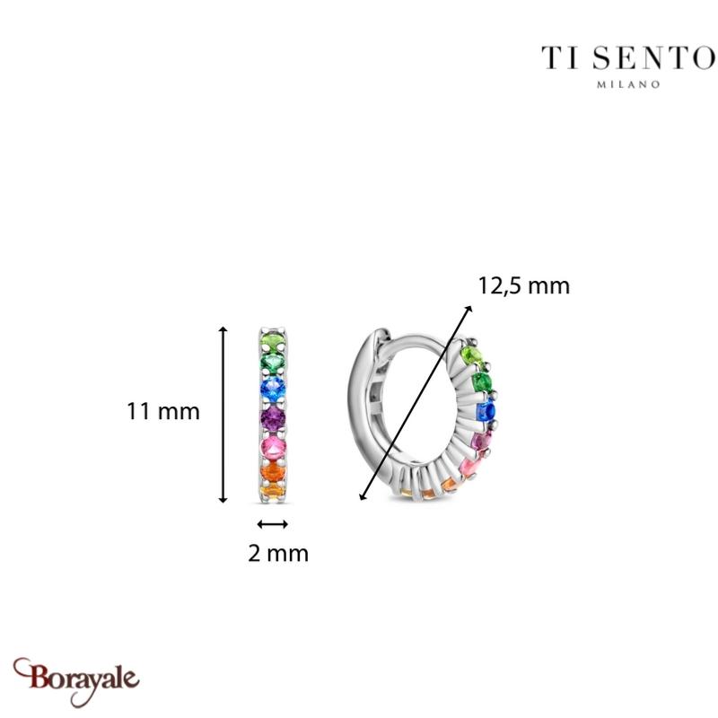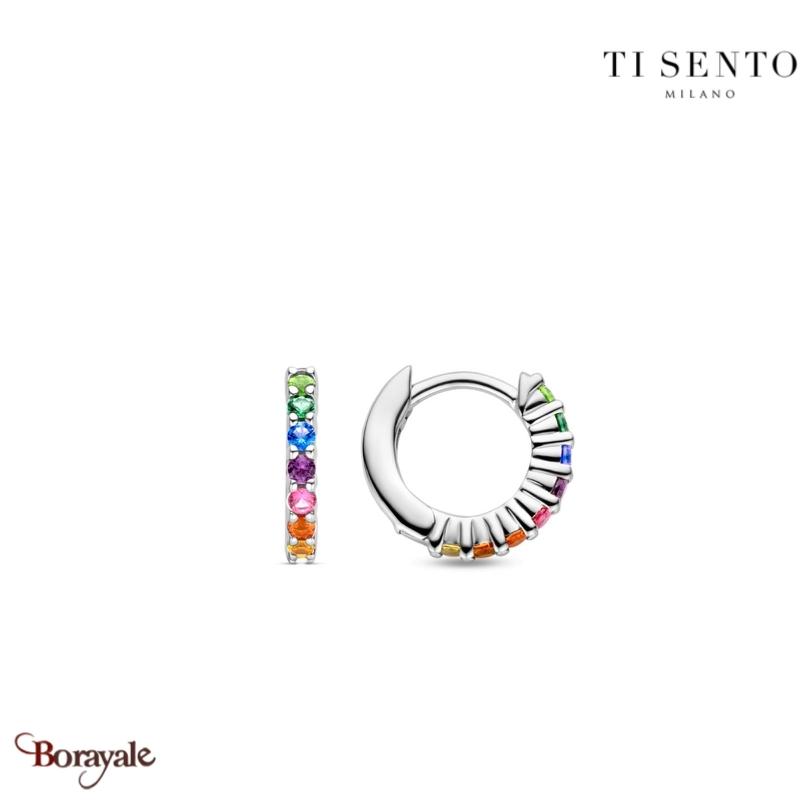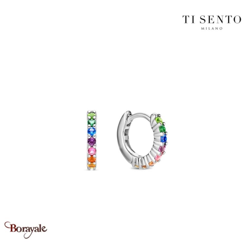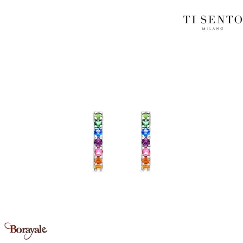 en bref : Les boucles d'oreilles TI Sento Milano 7906MC sont faites en argent fin plaqué platine de couleur Rainbow - Arc en ciel