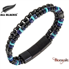 Bracelet Homme All Blacks bijoux acier et cuir noir et bleu 682433