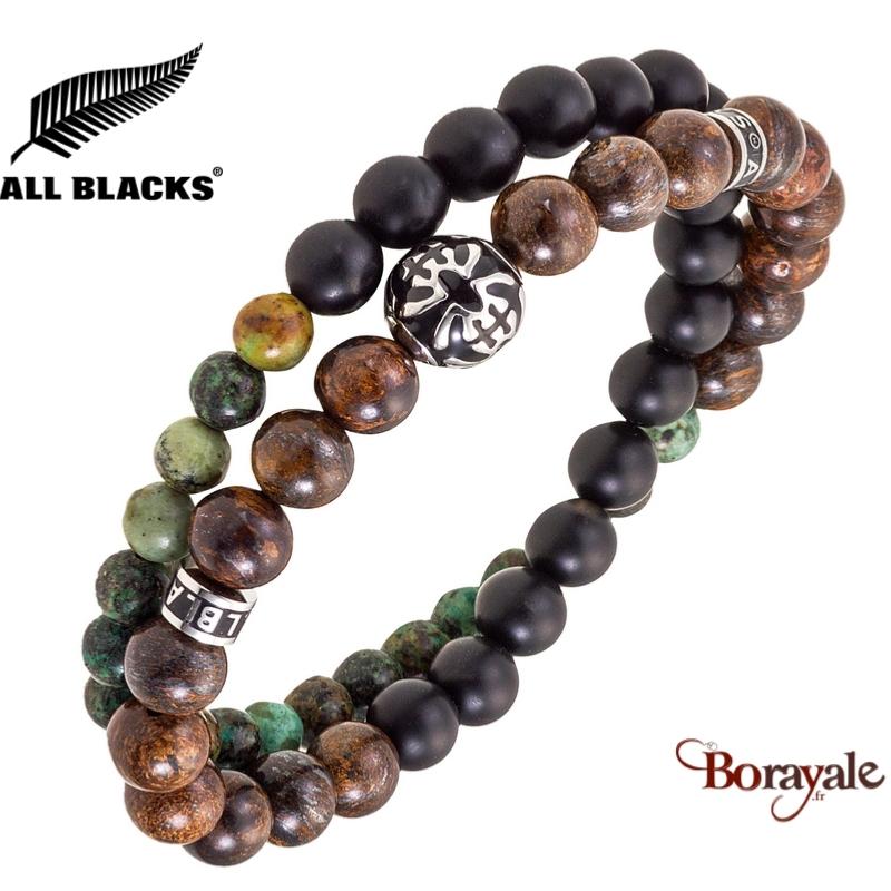 Bracelet All Blacks bijoux Homme double tours perles 682369