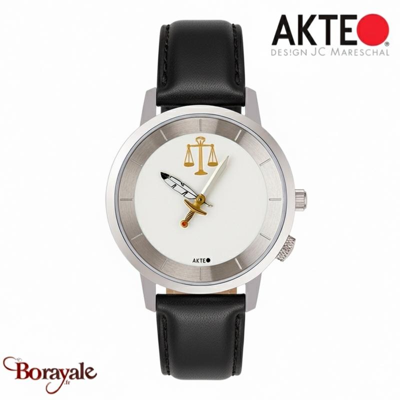 La Montre AKTEO Justice PJu01 est l'accessoire idéal pour les professionnels du droit et tous ceux qui sont attachés aux principes de la justice. Elle allie la créativité d'un design thématique à l'élégance intemporelle de l'acier argenté et du cuir noir, sous le sceau de la qualité française.