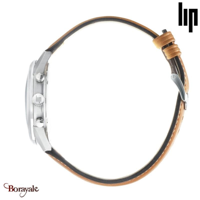 Fermeture du bracelet : Bracelet: Marron clair Lisse Cuir de Vachette et Boucle. Entre corne: 20 mm, Lip utilise exclusivement du cuir pleine fleur de production française pour le dessus du bracelet. La croûte de cuir, est utilisée pour l’intérieur des bracelets. Les bracelets sont découpés et façonnés à Besançon.