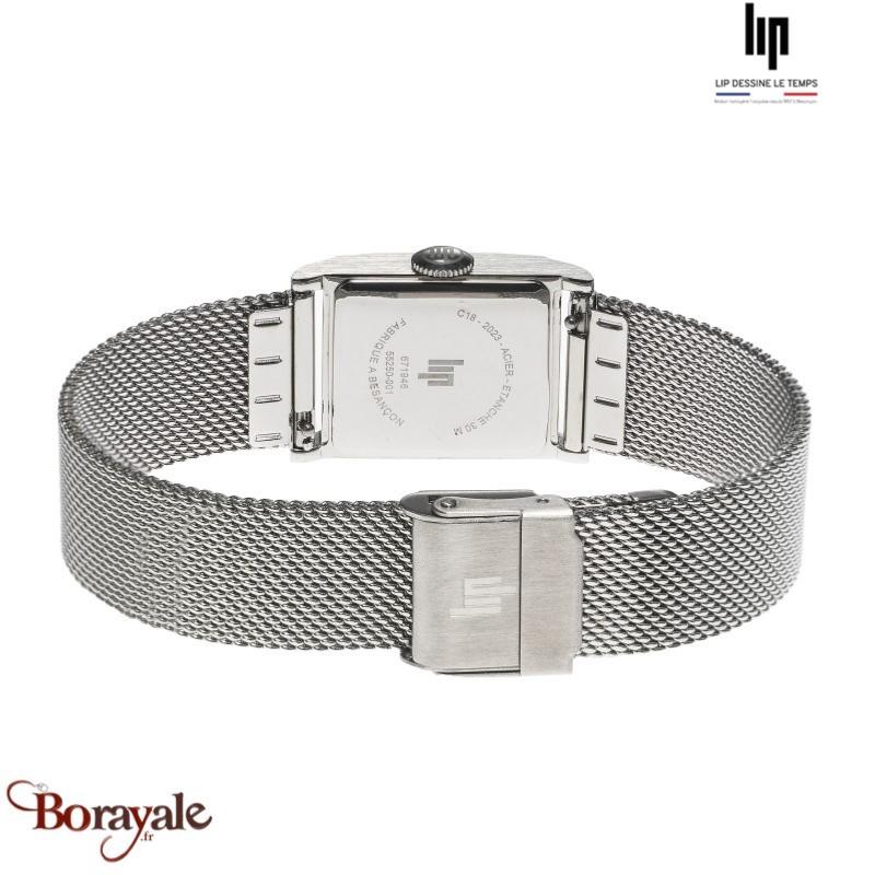 Mecanisme : Mécanisme: Quartz + pile type: Miyota 1L40, Reposant sur une base de rouages mécaniques, tous les mouvements quartz utilisés par LIP sont montés sur rubis, vous garantissant une précision et une qualité sans faille.