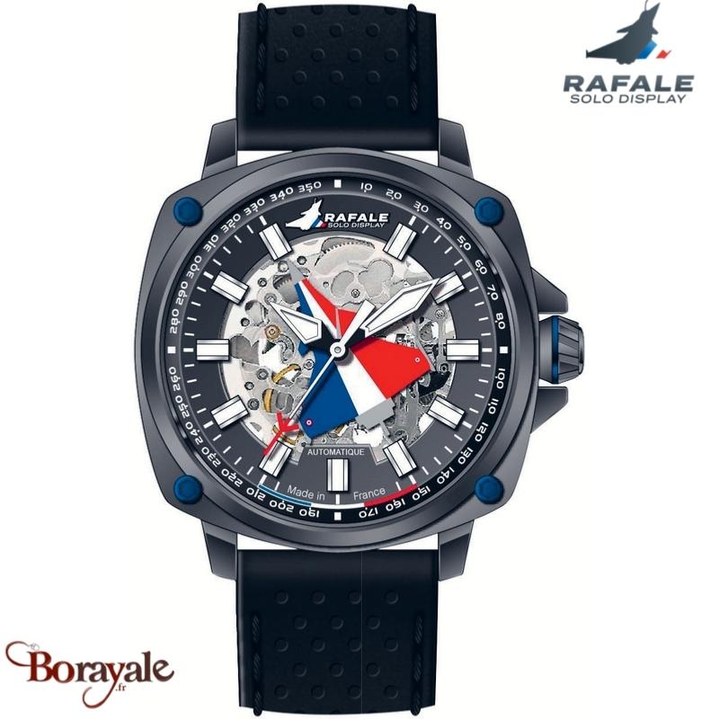 Montre RAFALE Solo Display PILOTE Automatique 666037 Homme française 44,5 mm, acier Gun métal, 4 vis bleus au cadran squelette, decoupe rafale Bleu, Blanc, Rouge