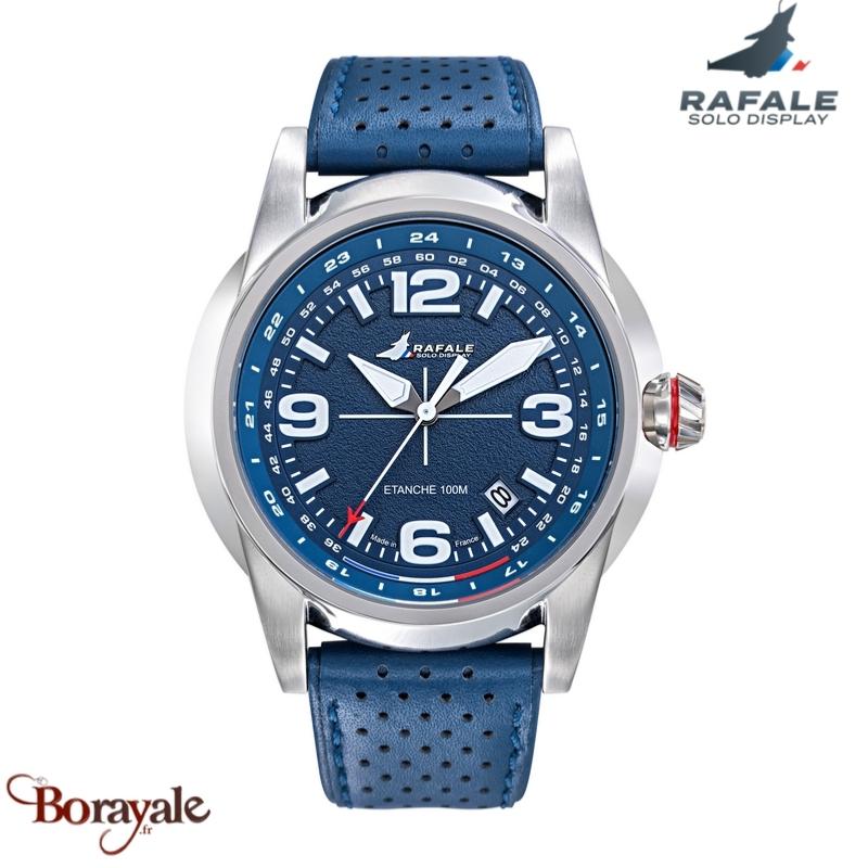Montre RAFALE Solo Display RSD Quartz 666020 Homme française 45 mm, acier argenté poli au cadran bleu