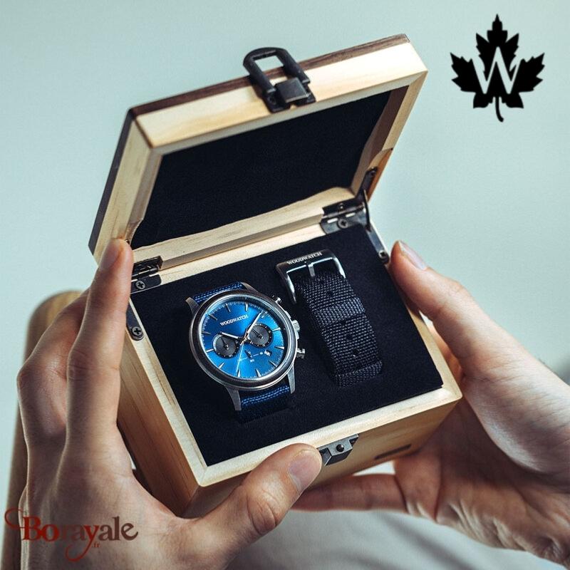Montre en bois WOODWATCH FARBOUND - 44MM Farbound Blue 2 bracelets WW-FB-BE