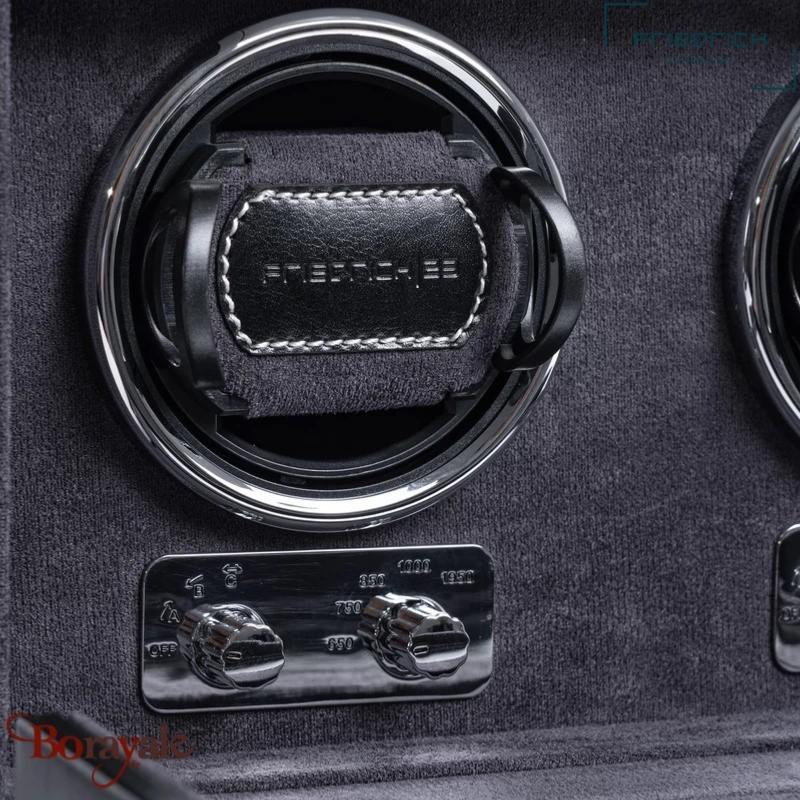 Le remontoir abrite deux montres automatiques et dispose de différents modes de rotation et de fonctionnement pour répondre aux différentes exigences des montres automatiques d'aujourd'hui. Les commutateurs de ce segment permettent de sélectionner l'un des différents programmes de mouvement.